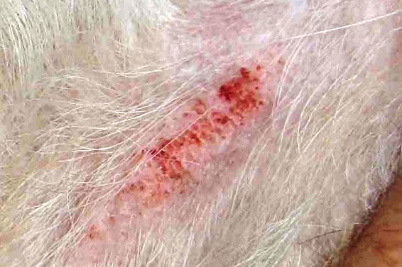 Εάν μαζευτεί κρούστα στις πληγές, τρίψτε τις κάθε δεύτερη ή τρίτη μέρα με λάδι (Babyoil ή παρόμοιο). Με αυτό τον τρόπο μαλακώνει η κρούστα και το σκυλί δεν μπορεί να γδάρει ξανά την πληγή.